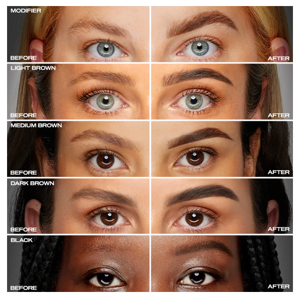 Available in five base shades, including one modifier shade, you can easily customize up to 17 unique color options to perfectly match any client's natural brow color.